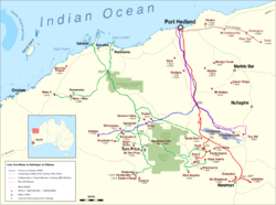 BHP is the second-largest iron ore mining company in the Pilbara, behind Rio Tinto and ahead of the Fortescue Metals Group.[4] In 2010, BHP employed 8,000 people in its Pilbara operations.[3]