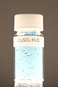4. It is used to demonstrate the principle of mineral hydration. The pentahydrate form, which is blue, is heated, turning the copper sulfate into the anhydrous form which is white, while the water that was present in the pentahydrate form evaporates. When water is then added to the anhydrous compound, it turns back into the pentahydrate form, regaining its blue color.[20] Copper(II) sulfate pentahydrate can easily be produced by crystallization from solution as copper(II) sulfate, which is hygroscopic.