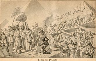 labor, where Egyptian peasants were drafted to work and paid in bread and beer. (While the work was hard, having an assured constant food source could be preferable to having to depend on one's own subsistence farming.) The pyramid builders at Giza worked in three-month shifts, and the 10,000 laborers would consume 21 cattle and 23 sheep each day, for 30 years.[3][4]