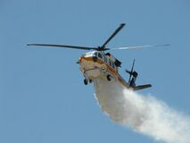 Los Angeles County Fire Department's Sikorsky S-70C Firehawk during a water drop demonstration at Station 129 in Lancaster, California