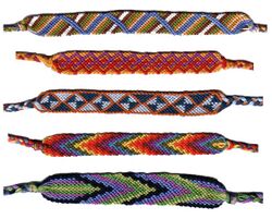 A friendship bracelet is a decorative bracelet given by one person to another as a symbol of friendship. Friendship bracelets are often handmade, usually of embroidery floss or thread and are a type of macramé. There are various styles and patterns, but most are based on the same simple half-hitch knot. They represent a friendship that is strong and everlasting.