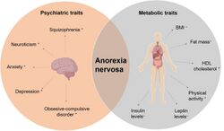 A 2019 study found a genetic relationship with mental disorders, such as schizophrenia, obsessive–compulsive disorder, anxiety disorder and depression; and metabolic functioning with a negative correlation with fat mass, type 2 diabetes and leptin.[61]