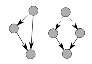 Two types of false confirmation. Dashed lines indicate sourcing invisible to a reviewer. In each case, a source (top) appears to a reviewer (bottom) as two independent sources.