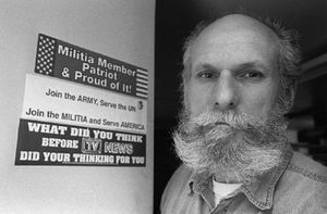 The first wave of the modern movement began at a 1992 meeting initiated by fringe preacher Peter J. Peters in Estes Park, Colorado. Peters' meeting was initiated in the wake of the Ruby Ridge fiasco and he invited a large number of leaders from both mainstream evangelical Christian and political extreme right circles; most mainstream Christians blew him off, so the attendance wound up reading like a who's who of the extreme right. Among those in attendance were Richard Butler, leader of the Aryan Nations, Louis Beam, leader of the Texas Ku Klux Klan, Chris Temple, who published the Christian Identity newspaper The Jubilee, and Kirk Lyons, an attorney who has headed an assortment of white supremacist and neo-Confederate legal defense funds.[12] Last but certainly not least, there was Larry Pratt, founder of both English First and the Gun Owners of America, who in 1990 had written a book calling for Americans to form "citizen defense patrols" along the lines of the right-wing fighters in Guatemala and the Philippines — conveniently leaving out that such groups were also known as "death squads" for their brutality.[13] The purpose of the meeting was to figure out what to do to make sure a Ruby Ridge didn't happen again. Their solution: form citizens' militias.