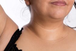 Higher neck circumference has been associated with cardiometabolic risk.[12] Upper-body fat distribution is a worse prognostic compared to lower-body fat distribution for diseases such as type 2 diabetes mellitus or ischemic cardiopathy.[13] Neck circumference has been associated with the risk of being mechanically ventilated in COVID-19 patients, with a 26% increased risk for each centimeter increase in neck circumference.[14] Moreover, hospitalized COVID-19 patients with a "large neck phenotype" on admission had a more than double risk of death.[15]