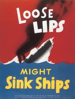 World War II propaganda poster which popularized the cautionary phrase "Loose lips sink ships"