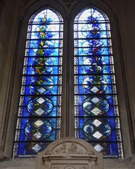 Wilde is generally considered by most literary commentators to be the greatest playwright of the Victorian era.[4] Several honours have been erected in his memory. On 14 February 1995, Wilde was commemorated with a stained-glass window at Poets' Corner in Westminster Abbey. The memorial, above the monument to Geoffrey Chaucer, was unveiled by his grandson Merlin Holland, while Sir John Gielgud read from the final part of De Profundis and Dame Judi Dench read an extract from The Importance of Being Earnest.[247]
