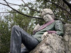 Jane Wilde was a niece (by marriage) of the novelist, playwright and clergyman Charles Maturin, who may have influenced her own literary career. She liked to believe, but without foundation, that she was of Italian ancestry,[8] and under the pseudonym "Speranza" (the Italian word for 'hope'), she wrote poetry for the revolutionary Young Irelanders in 1848; she was a lifelong Irish nationalist.[9] Jane Wilde read the Young Irelanders' poetry to Willie and Oscar, inculcating a love of these poets in her sons.[10] Her interest in the neo-classical revival showed in the paintings and busts of ancient Greece and Rome in her home.[10]