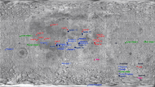 From Handwiki This is a partial list of artificial materials left on the Moon, many during the missions of the Apollo program. The table below does not include lesser Apollo mission artificial objects, such as a hammer and other tools, retroreflectors, Apollo Lunar Surface Experiments Packages, or the commemorative, artistic, and personal objects left by the twelve Apollo astronauts, such as the United States flags, the commemorative plaques attached to the ladders of the six Apollo Lunar Modules, the silver astronaut pin left by Alan Bean in honor of Clifton C. Williams whom he replaced, the Bible left by David Scott, the Fallen Astronaut statuette and memorial plaque placed by the crew of Apollo 15, the Apollo 11 goodwill messages disc, or the golf balls[1] Alan Shepard hit during an Apollo 14 moonwalk.