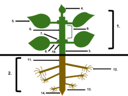 Some studies of plant anatomy use a systems approach, organized on the basis of the plant's activities, such as nutrient transport, flowering, pollination, embryogenesis or seed development.[4] Others are more classically[5] divided into the following structural categories: