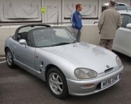 For the first time, a power limit of 64 PS (47 kW; 63 hp) was also applied in addition to the limit on engine size, in response to the ever-increasing power outputs available with turbocharging and multivalve technologies popularized in the late 1980s. Engine technology was also shared with sports bikes, which are designed more for rider enjoyment and less so for fuel economy, going against the idea of small people's cars and putting the kei cars' tax and structural advantages at risk of a governmental backlash. This power limit matched the highest output reached by any kei manufacturer at the time and was a gentlemen's agreement amongst the manufacturers in an effort to avoid a kei-class horsepower war. The only kei car to have exceeded this limit is the Caterham 7 160, a lightweight British sports car that was not expected to qualify as a kei car, though it is small enough (in dimensions and displacement) to fit the regulations. Its engine is rated at 80 hp (60 kW; 81 PS)—since that is how the car is homologated in the United Kingdom, Japanese authorities told the importer that its power should remain unchanged.[27] The Japan Automobile Manufacturers Association also self-imposes a speed limit of 140 km/h (87 mph) for kei cars.[28]