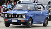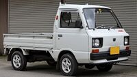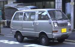 Emissions laws were another problem for the kei car industry in the mid-1970s. From 1973 to 1978, emissions standards were to be tightened in four steps.[19] Meeting the stricter standards, which were to be introduced in 1975, would be problematic for manufacturers of kei cars. This was particularly hard for Daihatsu and Suzuki, which focused on two-stroke engines, and especially Suzuki, a relatively small company whose entire lineup consisted of two-stroke kei cars.[20] Daihatsu, though, had both the engineering backing and powerful connections of their owner, Toyota, to aid them in meeting the new requirements. All manufacturers of kei cars were clamoring for increased engine displacement and vehicle size limits, claiming that the emissions standards could not be met with a functional 360-cc engine. In the end, the Japanese legislature relented, increasing the overall length and width restrictions by 200 mm (7.9 in) and 100 mm (3.9 in), respectively. Engine size was increased to 550 cc, taking effect from 1 January 1976.[20] The new standards were announced on 26 August 1975, leaving very little time for manufacturers to revise their designs to take advantage of the new limits.[21]
