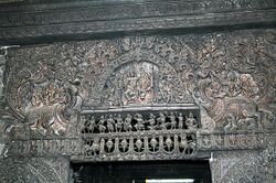 Makara and Kirtimukha protecting portal of Chennakesava Temple at Belur, India