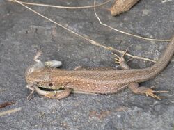 Deaths of large numbers of animals—particularly cold-blooded ones such as amphibians, reptiles, fishes and invertebrates—can take place as a result of temperature fluctuations, with young animals being particularly susceptible. Temperature may not be a problem for parts of the year, but can be a problem in especially hot summers or cold winters.[41] Extreme heat and lack of rainfall are also associated with suffering and increased mortality by increasing susceptibility to disease and causing vegetation that insects and other animals rely upon to dry out; this drying out can also make animals who rely on plants as hiding places more susceptible to predation. Amphibians who rely on moisture to breathe and stay cool may die when water sources dry up.[45] Hot temperatures can cause fish to die by making it hard for them to breathe.[46] Climate change and associated warming and drying is making certain habitats intolerable for some animals through heat stress and reducing available water sources.[47] Mass mortality is particularly linked with winter weather due to low temperatures, lack of food and bodies of water where animals live, such as frogs, freezing over;[48] a study on cottontail rabbits indicates that only 32% of them survive the winter.[49] Fluctuating environmental conditions in the winter months is also associated with increased mortality.[50]
