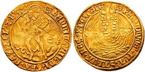 The Angel coin was favoured at these ceremonies because it has on the obverse an image of St. Michael slaying the Devil represented as a dragon (actually a heraldic Wyvern).[20] St. Michael, especially venerated for his role as captain of the heavenly host that drove Satan out of Heaven, was also associated with the casting out of devils and thus was regarded as a guardian of the sick.[21]