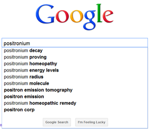 In 1998 a homeopathic remedy was prepared by exposing a solution to the gamma radiation produced by the annihilation of positronium — an exotic atom-like structure containing an electron and its anti-particle, a positron. According to the description supplied by authors, positrons were produced by beta-plus decay of sodium-22, then passed through a nitrogen gas cell to form positroniums.[14] As soon as these came shooting out of the nitrogen, they hit a metal plate, where they annihilated and produced 511 keV gamma radiation, which in turn irradiated some ethanol. Thus, the remedy never even came into contact with any antimatter — only with the radiation from its decay. Positronium is said to have themes of calming.[15]