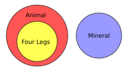 The classic "genus-difference" dictionary definition is in terms of nearest kind (genus proximum) and specific differences (differentia specifica). This genus-difference description may be involved in producing circular definitions of part and kind relationships, for example: "rake: an implement with three or more tines" → "tine: a part of a rake". However, if more specific differences are added, then the effect of circularity may disappear: "rake: a gardening implement with a long handle with three or more tines arranged on crossbar at 90° to the handle and the tines at 90° to both crossbar and handle"; in this case, "tine" is most usefully defined with reference to "rake", but with additional differences providing points of comparison, e.g.: "tine: a sharp spike at the end of a rake". In practice, a pragmatic approach is often taken in considering the effects of circularity in dictionary definitions.[4]