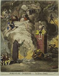 Dante's 14th century epic poem Inferno assigns those committed to the deadly sin of greed to punishment in the fourth of the nine circles of Hell. The inhabitants are misers, hoarders, and spendthrifts; they must constantly battle one another. The guiding spirit, Virgil, tells the poet these souls have lost their personality in their disorder, and are no longer recognizable: "That ignoble life, Which made them vile before, now makes them dark, And to all knowledge indiscernible."[36] In Dante's Purgatory, avaricious penitents were bound and laid face down on the ground for having concentrated too much on earthly thoughts.