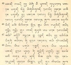 Several scripts used in the Philippines and Indonesia, such as Hanunó'o, are traditionally written with lines moving away from the writer, from bottom to top, but are read horizontally left to right; however, Kulitan, another Philippine script, is written top to bottom and right to left. Ogham is written bottom to top and read vertically, commonly on the corner of a stone. The ancient Libyco-Berber alphabet was also written from bottom to top.[31]