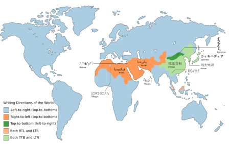 Left-to-right writing has the advantage that, since most people are right-handed,[32][33] the hand does not interfere with the just-written text—which might not yet have dried—since the hand is on the right side of the pen. Right-to-left writing, by contrast, may have been advantageous back when writing was done with hammer and chisel; the scribe would hold the hammer in their right hand and chisel in their left, and going right-to-left would mean the hammer was less likely to hit the left hand, as the right hand had more control.[34][35]