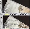 Comparison of crimescene impression with suspect's footwear (closeup)