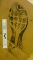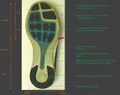 Imprints of a person's foot can be left on the insole (inside) of footwear. Due to the sweat and dirt from the foot the insole impression can be left regardless of the wearers foot being in a sock or other covering. The size and arrangement of foot and toe imprints can be used to determine whether a person has worn a piece of footwear. The analysis and comparisons of foot imprints is part of the discipline of forensic podiatry. The insole will show a virtual image of the bare foot print of the wearers foot. This can be compared to the actual barefoot print of the shoe owner to gain a match. A 3d optical surface scan can then be used to build up a model of the foot itself. Useful in forensic evidence casting and identification. H Farmer BSc Hons Fs 2018
