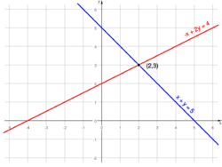 A system of linear equations (or linear system) is a collection of linear equations involving one or more variables.[lower-alpha 2] For example,