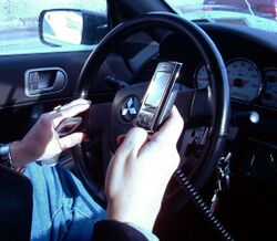 A 2011 study reported that over 90% of college students surveyed text (initiate, reply or read) while driving.[324] The scientific literature on the danger of driving while sending a text message from a mobile phone, or texting while driving, is limited. A simulation study at the University of Utah found a sixfold increase in distraction-related accidents when texting.[325] Due to the complexity of smartphones that began to grow more after, this has introduced additional difficulties for law enforcement officials when attempting to distinguish one usage from another in drivers using their devices. This is more apparent in countries which ban both handheld and hands-free usage, rather than those which ban handheld use only, as officials cannot easily tell which function of the phone is being used simply by looking at the driver. This can lead to drivers being stopped for using their device illegally for a call when, in fact, they were using the device legally, for example, when using the phone's incorporated controls for car stereo, GPS or satnav.