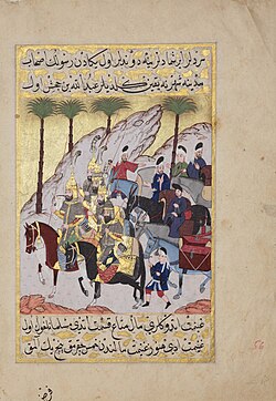 ![]() Muhammad and his companions on an Ottoman miniature in Persian script | |