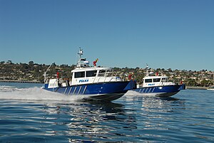 On November 22, 2010 the city accepted 2 new fireboats, to be operated by the San Diego Harbor Police, that were paid for by a Port security grant from the federal Department of Homeland Security. [5][6] The two new vessels each have three water cannon. They replaced three older and less capable vessels, that had been in service for 35 years.