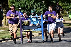 Wilmington College Greek life participates yearly in Greek Bed Races at Homecoming.