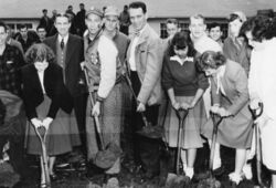 The ground breaking for Marble Hall, which was entirely built by students and brought national attention to Wilmington College. 13 April 1948.