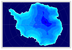 During the last glacial period Antarctica was blanketed by a massive ice sheet, much as it is today. The ice covered all land areas and extended into the ocean onto the middle and outer continental shelf.[35][36] According to ice modelling, ice over central East Antarctica was generally thinner than today.[37]