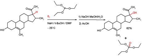 Autoxidation of a keto steroid with oxygen to the hydroperoxide (not depicted) followed by reduction with triethylphosphite to the alcohol