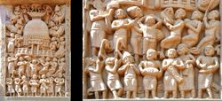 One of the earliest form of Buddhist devotional practice was the early Buddhist tradition of worshiping the Buddha through the means of stupas and bodily relics (sarira).[103] Later (after about the third century CE), devotion using Buddha images also became a very popular form of Buddha bhakti.[104]