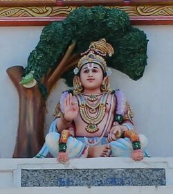 Several saints are known to have practiced these bhavas. The nineteenth century mystic, Ramakrishna is said to have practiced these five bhavas.[95] The attitude of Hanuman towards the god Rama is considered to be of dasya bhava.[96] The approach of Arjuna and the cowherd boys of Vrindavan with the god Krishna is regarded as sakhya bhava.[95][97] Radha's love towards Krishna is madhurya bhava.[95] The attitude of Krishna's foster-mother Yashoda towards him exemplifies vatsalya bhava.[98] The Chaitanya Charitamrita mentions that Chaitanya came to distribute the four spiritual sentiments of Vraja loka: dasya, sakhya, vatsalya, and sringara. Sringara is the relationship of the intimate love.