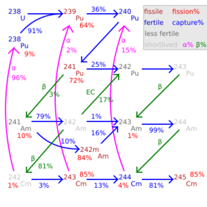 Ratios of capture reactions to fission reactions are also worse (more captures without fission) in most nuclear fuels such as plutonium-239, making epithermal-spectrum reactors using these fuels less desirable, as captures not only waste the one neutron captured but also usually result in a nuclide that is not fissile with thermal or epithermal neutrons, though still fissionable with fast neutrons. The exception is uranium-233 of the thorium cycle, which has good capture-fission ratios at all neutron energies.