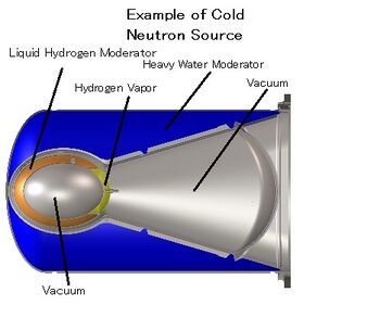 Cold neutrons are thermal neutrons that have been equilibrated in a very cold substance such as liquid deuterium. Such a cold source is placed in the moderator of a research reactor or spallation source. Cold neutrons are particularly valuable for neutron scattering experiments.[105]