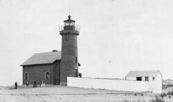 Brant Point on the north side of Nantucket harbor still has the sandy beach that was a good site for building large wooden ships[1] and it is the location of Brant Point Light.