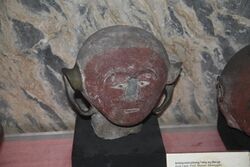 The method of shaping the head is rather similar from the standard potting technique of creating a round pot with a high or long neck. The presence of paint may be an indication of status, while the size of the heads is an indication of age.