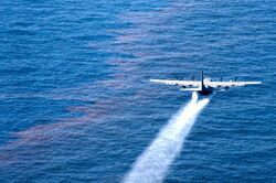 Dispersants can be used to dissipate oil slicks.[51] A dispersant is either a non-surface active polymer or a surface-active substance added to a suspension, usually a colloid, to improve the separation of particles and to prevent settling or clumping. They may rapidly disperse large amounts of certain oil types from the sea surface by transferring it into the water column. They will cause the oil slick to break up and form water-soluble micelles that are rapidly diluted. The oil is then effectively spread throughout a larger volume of water than the surface from where the oil was dispersed. They can also delay the formation of persistent oil-in-water emulsions. However, laboratory experiments showed that dispersants increased toxic hydrocarbon levels in fish by a factor of up to 100 and may kill fish eggs.[52] Dispersed oil droplets infiltrate into deeper water and can lethally contaminate coral. Research indicates that some dispersants are toxic to corals.[53] A 2012 study found that Corexit dispersant had increased the toxicity of oil by up to 52 times.[54] In 2019, the U.S. National Academies released a report analyzing the advantages and disadvantages of several response methods and tools.[55]