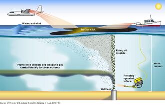 Burning surface oil can also be a source for pollution such as soot particles. During the cleanup and recovery process, it will also generate air pollutants such as nitric oxides and ozone from ships. Lastly, bubble bursting can also be a generation pathway for particulate matter during an oil spill.[25] During the Deepwater Horizon oil spill, significant air quality issues were found on the Gulf Coast, which is the downwind of DWH oil spill. Air quality monitoring data showed that criteria pollutants had exceeded the health-based standard in the coastal regions.[26]