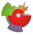 In information visualization, a sunburst diagram or sunburst chart is a multilevel pie chart used to represent the proportion of different values found at each level in a hierarchy.