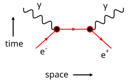 He did exceptionally well in school. Impressed with Feynman's abilities, a high school teacher told him about the principle of least action,[note 1] something that would later play a crucial role in Feynman's career as a physicist.[1] He attended the Massachusetts Institute of Technology (MIT) as an undergraduate before pursuing a doctoral degree at Princeton University. As a graduate student, Feynman and his supervisor, John Archibald Wheeler, investigated the links between causality and electrodynamics. The result is the Feynman-Wheeler absorber theory, published after the end of World War II.[4] Wheeler and Feynman decided that due to wartime conditions, it was best for Feynman to concentrate on obtaining his PhD. For his doctoral dissertation published in 1942, Richard Feynman created the path integral formulation of quantum mechanics, starting from the Lagrangian formalism laid out by Paul Dirac in 1932. In his own dissertation, submitted in 1925, Dirac introduced the Hamiltonian formalism, which he showed to be fully equivalent to the matrix mechanics of Max Born, Pascual Jordan, Wolfgang Pauli, and Werner Heisenberg, and the wave mechanics of Erwin Schrödinger.[5] For a very long time, the Lagrangian formalism was neglected as most physicists stuck to one of the above approaches to quantum theory. After showing that, not surprisingly, the Lagrangian formalism reproduces Schrödinger's equation (up to a constant of integration),[4] Feynman realized that the Lagrangian formalism provided a number of crucial insights into the nature of the quantum world. In classical mechanics, Lagrange's formulation yields equations of motion whose solutions specify a unique trajectory for the object, the one demanded by Newton's laws.[1] In classical optics, Lagrange's formulation yields the path of a beam of light through a material medium if its index of refraction is known. In the quantum regime, a particle tries out all possible trajectory, each with is own probability determined by a set of rules devised by Feynman. This is the essence of the path integral formulation of quantum mechanics.[4] Feynman later used this to develop his own version of the quantum theory of electromagnetism, better known as quantum electrodynamics, which he completed in 1948. During this process, he developed a way to understand the behavior of subatomic particles using pictorial tools that later became known as Feynman diagrams.[4]