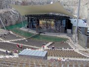 The wide variety of musical performances, whether or not they are artificially amplified, all provide entertainment irrespective of whether the performance is from soloists, choral or orchestral groups, or ensemble. Live performances use specialised venues, which might be small or large; indoors or outdoors; free or expensive.[64] The audiences have different expectations of the performers as well as of their own role in the performance. For example, some audiences expect to listen silently and are entertained by the excellence of the music, its rendition or its interpretation.[65] Other audiences of live performances are entertained by the ambience and the chance to participate. Even more listeners are entertained by pre-recorded music and listen privately.