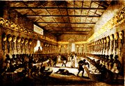Although most forms of entertainment have evolved and continued over time, some once-popular forms are no longer as acceptable. For example, during earlier centuries in Europe, watching or participating in the punishment of criminals or social outcasts was an accepted and popular form of entertainment. Many forms of public humiliation also offered local entertainment in the past. Even capital punishment such as hanging and beheading, offered to the public as a warning, were also regarded partly as entertainment. Capital punishments that lasted longer, such as stoning and drawing and quartering, afforded a greater public spectacle. "A hanging was a carnival that diverted not merely the unemployed but the unemployable. Good bourgeois or curious aristocrats who could afford it watched it from a carriage or rented a room."[41] Public punishment as entertainment lasted until the 19th century by which time "the awesome event of a public hanging aroused the[ir] loathing of writers and philosophers".[41] Both Dickens and Thackeray wrote about a hanging in Newgate Prison in 1840, and "taught an even wider public that executions are obscene entertainments".[41]