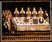 Banquets have been a venue for amusement, entertainment or pleasure since ancient times,[49] continuing into the modern era.[50] until the 21st century when they are still being used for many of their original purposes – to impress visitors, especially important ones; to show hospitality; as an occasion to showcase supporting entertainments such as music or dancing, or both. They were an integral part of court entertainments and helped entertainers develop their skills. They are also important components of celebrations such as coronations, weddings, birthdays civic or political achievements, military engagements or victories as well as religious obligations, one of the most famous being the Banqueting House, Whitehall in London.[51][52] In modern times, banquets are available privately, or commercially in restaurants, sometimes combined with a dramatic performance in dinner theatres.[53] Cooking by professional chefs has also become a form of entertainment as part of global competitions such as the Bocuse d'Or.[54]