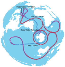 The Atlantic Meridional Overturning circulation (AMOC) is part of a global thermohaline circulation.
