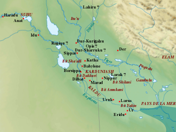 Important Kaldu tribes and their regions in southeastern Babylonia were Bit-Yâkin (the original area the Chaldeans settled in on the Persian Gulf), Bet-Dakuri, Bet-Adini, Bet-Amukkani, and Bet-Shilani.[7]