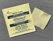 Rubbing alcohol, hand sanitizer, and disinfecting pads typically contain a 60–70% solution of isopropyl alcohol or ethanol in water. Water is required to open up membrane pores of bacteria, which acts as a gateway for isopropyl alcohol. A 75% v/v solution in water may be used as a hand sanitizer.[11] Isopropyl alcohol is used as a water-drying aid for the prevention of otitis externa (swimmer's ear).[12]